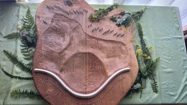 知恵屋久杉ヒーリングライアー制作弦張りとその工程